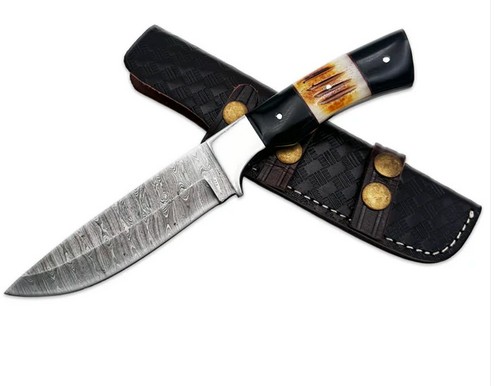 The Bone Collector BC 827-DB is a rugged, high-performance hunting knife built for outdoor enthusiasts. Featuring a 5″ Damascus steel drop-point blade with full tang construction, it offers superior strength and cutting precision. The burn bone handle in striking black and white provides a secure, comfortable grip and a unique aesthetic. At 10″ overall length and weighing just 14 oz., this fixed-blade knife is perfect for survival, camping, and hunting. Includes a premium leather sheath for safe and easy carry.